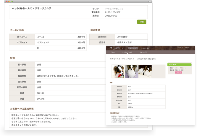 トリミングカルテでお客様にご満足を。